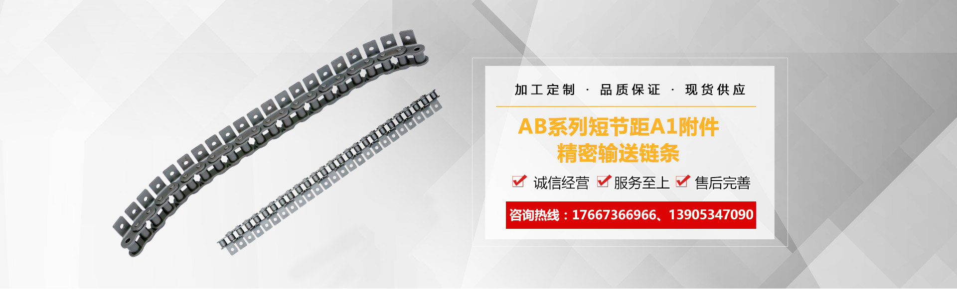 1、鏈條產(chǎn)品有各種不銹鋼、碳鋼輸送鏈條、雙節(jié)距輸送鏈條、空心銷軸鏈條、不銹鋼塑料平頂鏈、不銹鋼精密滾子鏈、特殊工礦輸送鏈、耐高溫輸送鏈條、非標(biāo)鏈條、彎板非標(biāo)鏈條、大節(jié)距輸送鏈條、各種鏈條用滾子(材質(zhì)碳鋼、不銹鋼)等。